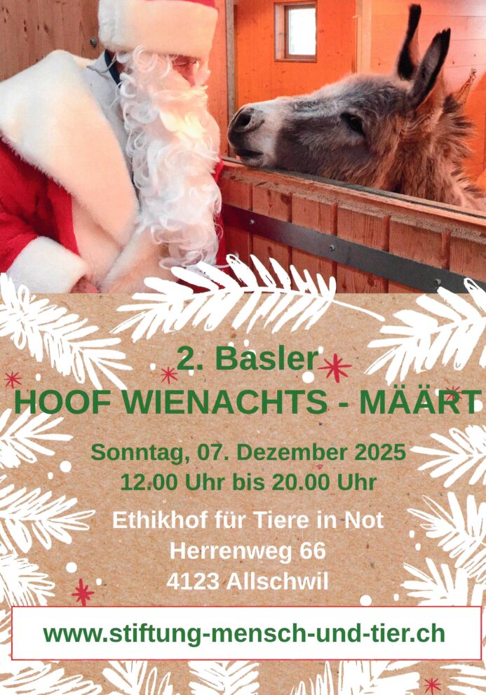 Erleben Sie einen speziellen Vorweihnachts-Sonntag in gemütlicher und besinnlicher Atmosphäre auf dem Ethikhof für Tiere in Not in Allschwil.